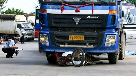 前天下午6時許,在四境路與海扽路交叉口,一輛大型平板拖車與一輛摩托車相撞,事故致使騎摩托車的兩人當(dāng)場死亡。