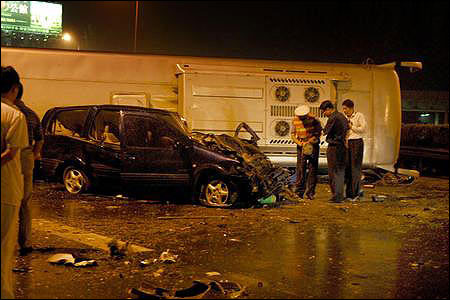 警察將機(jī)場(chǎng)高速部分封閉,并調(diào)來(lái)吊車和清障車清理現(xiàn)場(chǎng)。7輛120急救車很快趕到現(xiàn)場(chǎng),據(jù)一位120醫(yī)生說(shuō),趕到時(shí)大客車四輪朝天,被撞碎的前擋風(fēng)玻璃上有個(gè)大窟窿,許多傷者被壓在車下,旅行車橫在出京方向的中間車道,車頭、車頂、車尾全都癟了進(jìn)去。陸續(xù)趕到的急救車,將傷者分別送到了朝陽(yáng)醫(yī)院、酒仙橋醫(yī)院和清華大學(xué)附屬第一醫(yī)院。
