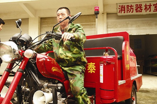 這款小型消防車(chē)就是一臺(tái)三輪摩托車(chē),跟普通消防車(chē)一樣全身紅亮,外表看似不起眼的它,作用可真不小,不少村莊道路狹窄,一旦發(fā)生火災(zāi),個(gè)頭碩大的消防車(chē)根本進(jìn)不去,這時(shí)“小個(gè)子”就能大顯身手,不但跑得快,而且很好操作使用,進(jìn)小巷滅火可是它的強(qiáng)項(xiàng)。消防隊(duì)員說(shuō),車(chē)上配有兩套滅火裝置,連接消防栓射出的水柱能達(dá)45米遠(yuǎn),可供水到5層樓之高。